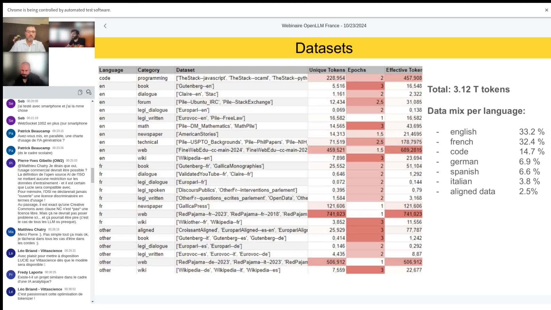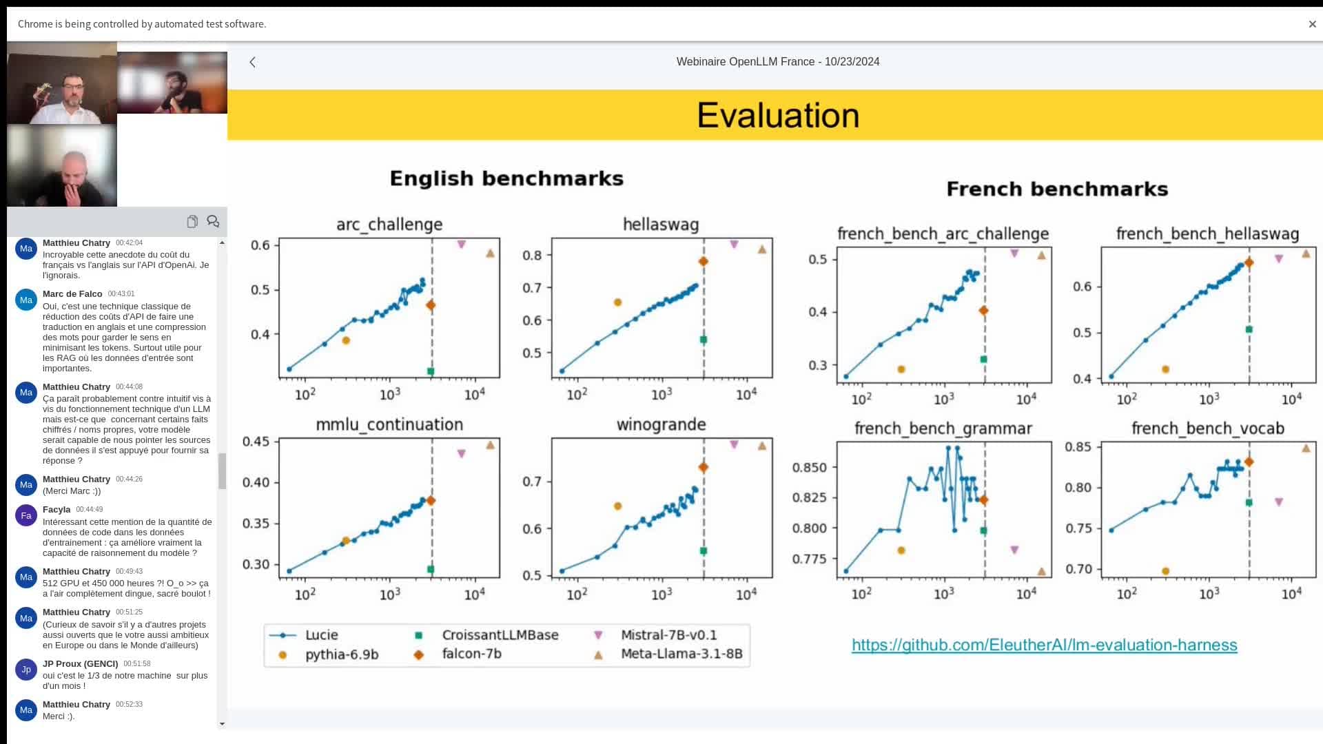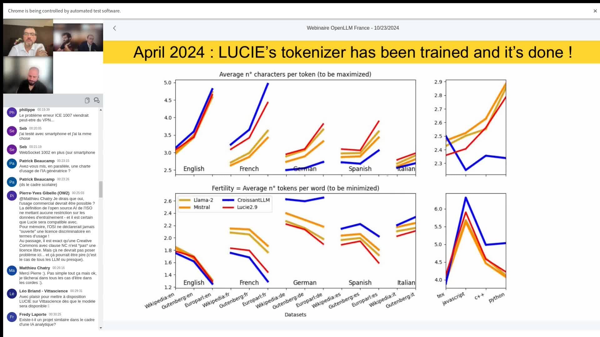 Un moment très attendu par les membres de la communauté OpenLLM-France, les passionnés d’IA et d’Open Source, et tous les curieux désireux de connaître les avancées sur LUCIE : le tout premier modèle d’IA réellement Open Source, avec des données d’entrainement 100 % transparentes.